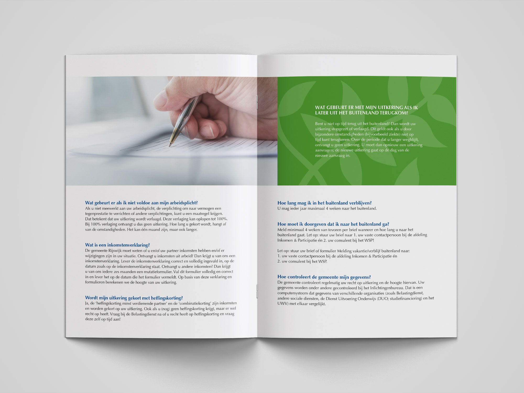 Door de Gemeente Rijswijk werden we gevraagd de vormgeving te doen voor een brochure voor de regels omtrent bijstandsuitkeringen. Ook verzorgden we het drukwerk voor de brochure.